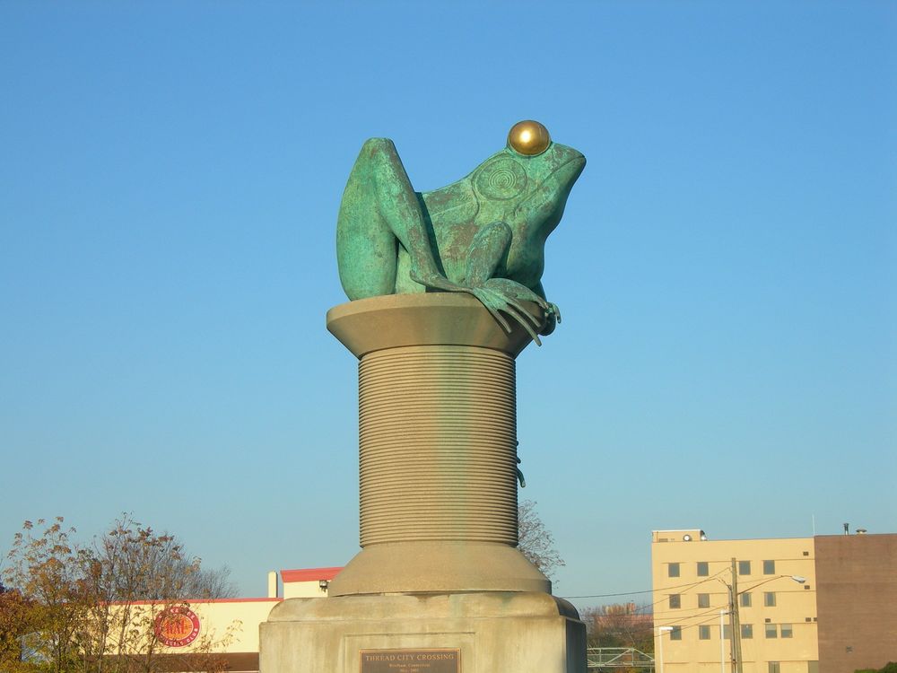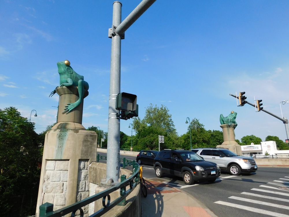 Một trong những con ếch trên Thread City Crossing, còn được gọi là Cầu Ếch ở Willimantic, Connecticut. Ảnh: Jimmy Emerson / Flickr