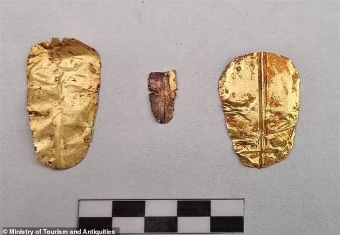 Hai chiếc lưỡi vàng lấy ra từ xác ướp - Ảnh: Bộ Du lịch và cổ vật Ai Cập