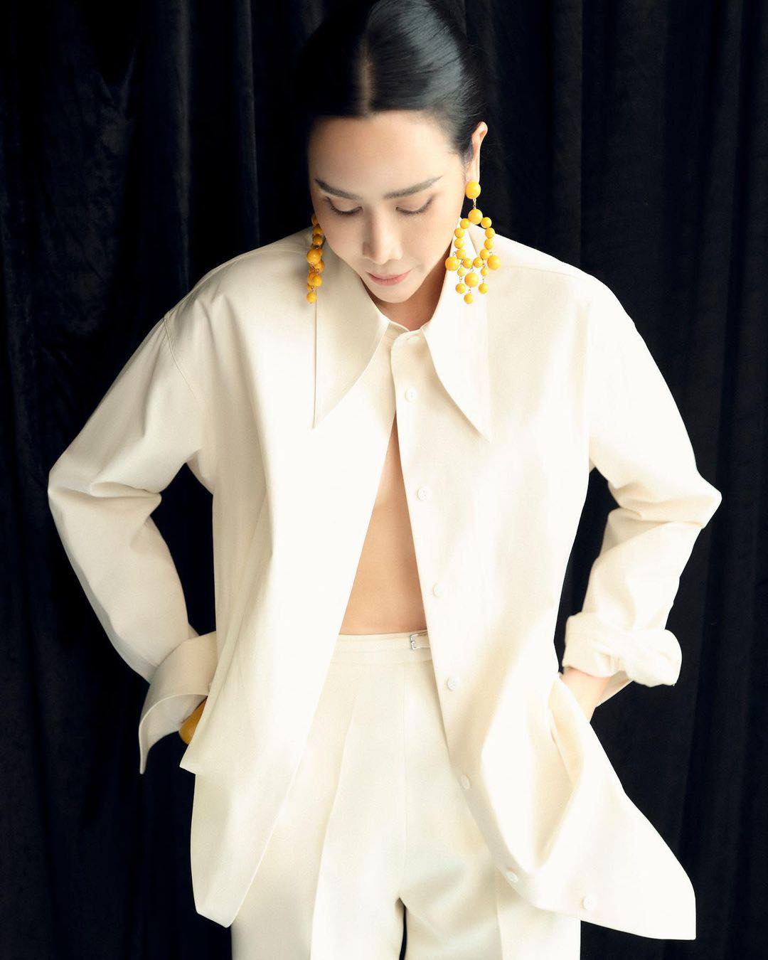 Old  Default Bà xã Hồ Hoài Anh diện mốt sơ mi bung cúc hững hờ, được khen hết lời vì mới mẻ