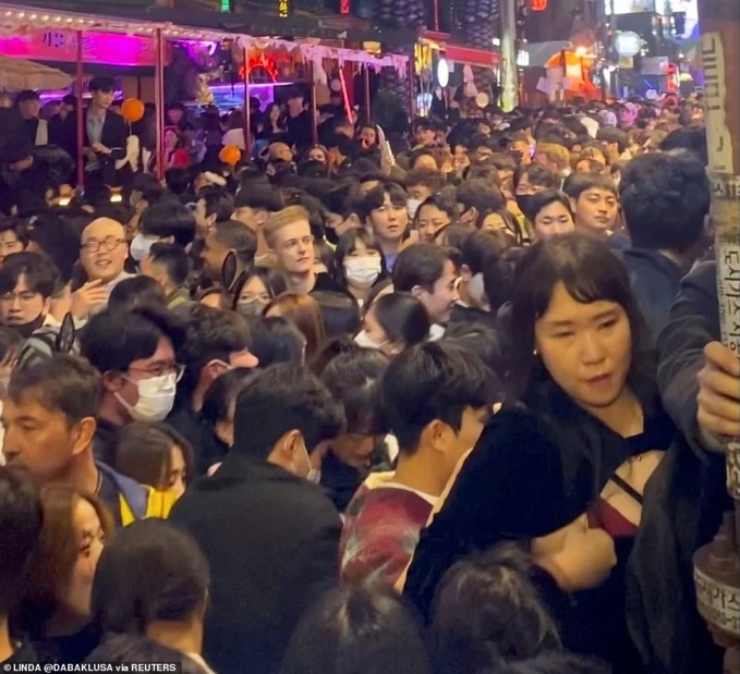 Dòng người đông đúc ở Itaewon trước khi xảy ra vụ giẫm đạp. Ảnh:Reuters