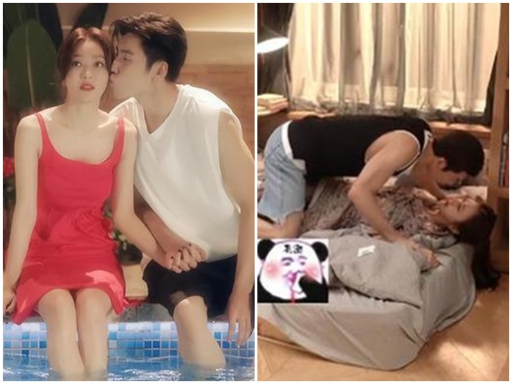 Ngoài nụ hôn lãng mạn trên, Tần Lam và Vương Tử Dị còn có cảnh hôn phớt ở bể bơi. So với cảnh hôn căng thẳng trên, Vương Tử Dị đã thoải mái hơn.