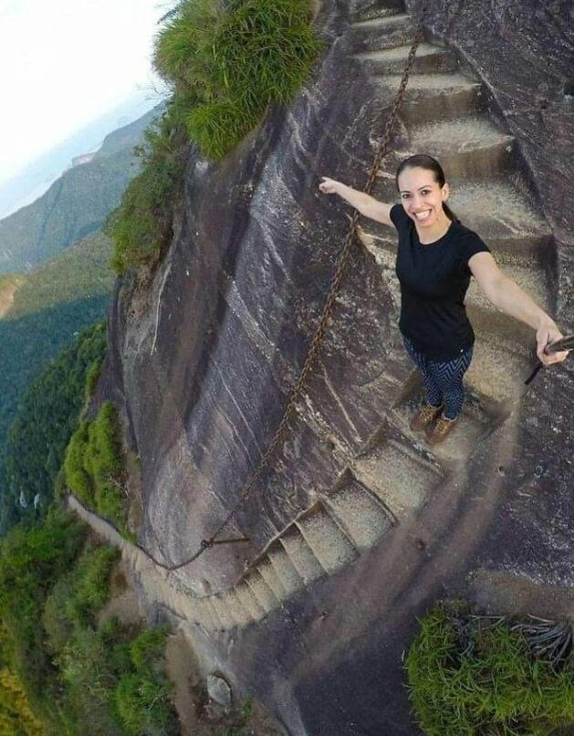 Hãy thầm cầu mong đừng có cơn gió lớn nào thổi qua khi bước trên chiếc thang này.