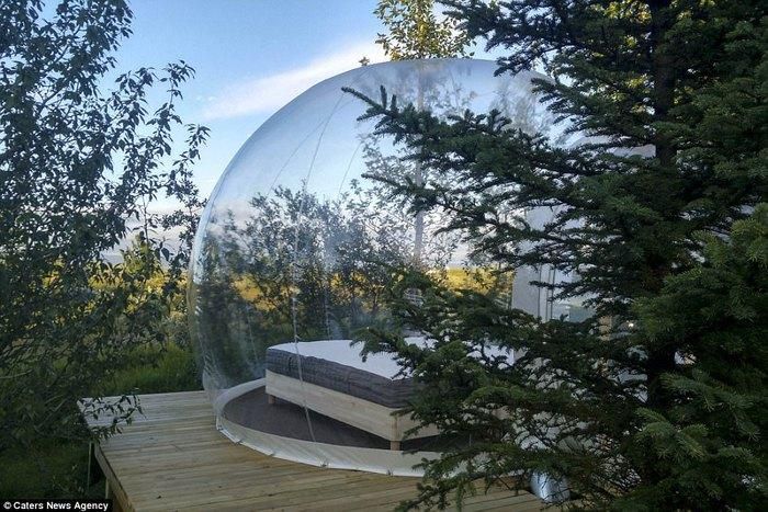 Nằm sâu trong một rừng thông ở Skalholt, gần sông Hvítá, miền nam Iceland là khách sạn 5 triệu sao (5 Million Star Hotel hay Bubble Hotel) vô cùng đặc biệt. Theo Daily Mail, các phòng nghỉ ở đây được thiết kế như những quả cầu hay bong bóng trong suốt, đem đến cho du khách trải nghiệm ngắm nhìn thiên nhiên toàn cảnh 360 độ mà không cần bước chân ra khỏi phòng. Đặc biệt, những phòng "bong bóng" này sẽ là địa điểm rất lý tưởng để ngắm cực quang.