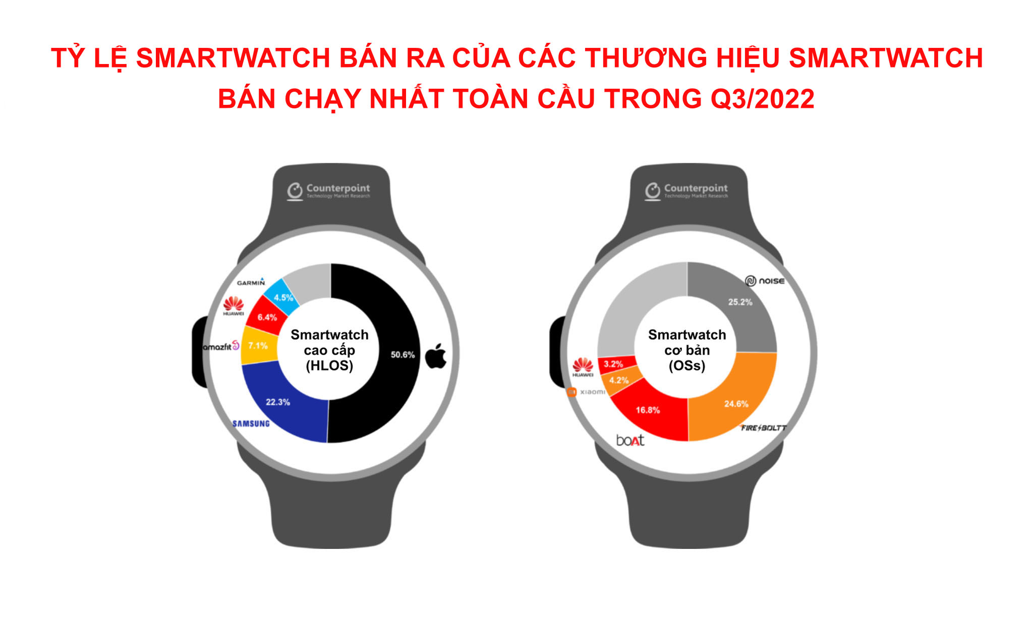 Trong khi sản lượng smartphone cao cấp tăng 23% so với cùng kỳ năm ngoái, thì lượng smartwatch cơ bản được bán ra đã tăng hơn gấp đôi, chiếm 35% tổng thị trường smartphone toàn cầu.
