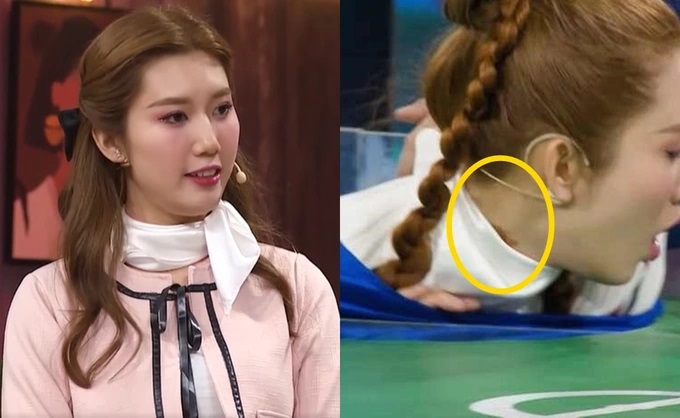 Thúy Ngân phải dùng khăn, mặc áo kín cổ che vết thương khi tham gia chương trình truyền hình (Ảnh: Chụp màn hình)