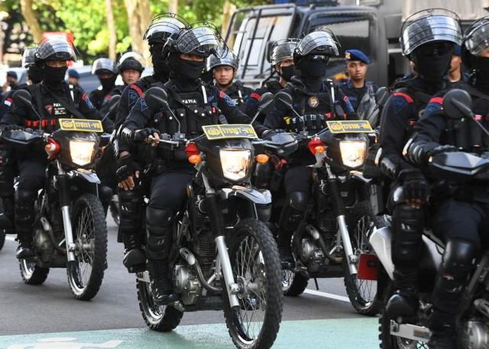 Từ sáng ngày 6/1, lực lượng an ninh đã tập hợp tại sân Bung Karno để chuẩn bị cho công tác an ninh chiều nay.