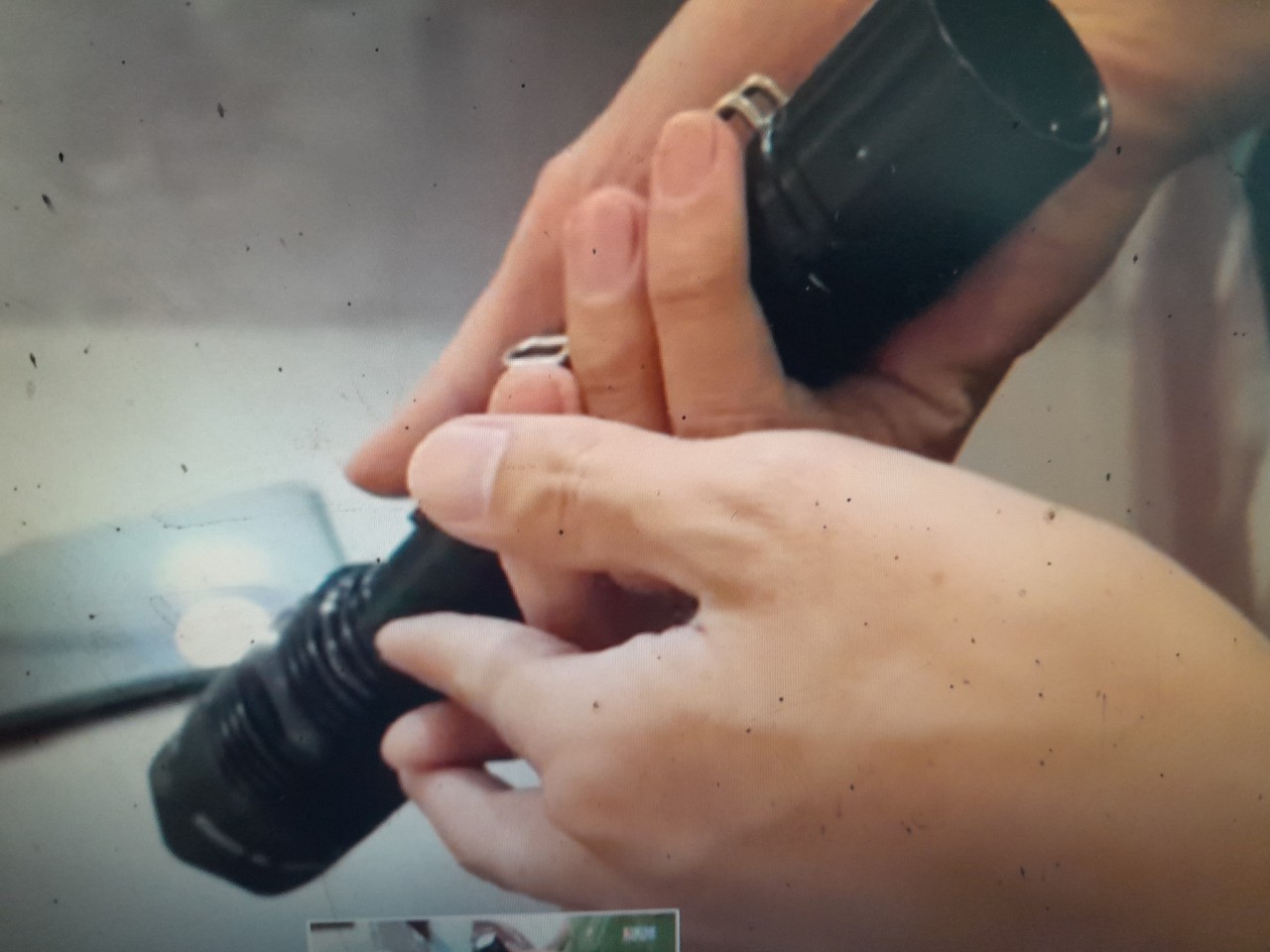 Cây đèn pin sử dụng điện để chích nạn nhân khi cướp tài sản. Ảnh: Thiên Long