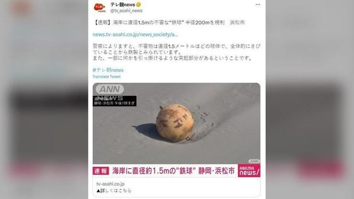 Một quả cầu bí ẩn được tìm thấy trên một bãi biển ở một thành phố của Nhật Bản đã khiến cảnh sát phải phong tỏa khu vực.