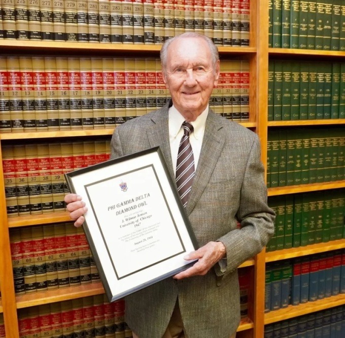 Wilmar Jensen, 95 tuổi, nhận giải thưởng khi làm thành viên của Hội nam sinh đại học trong 75 năm. Ảnh nhân vật cung cấp.