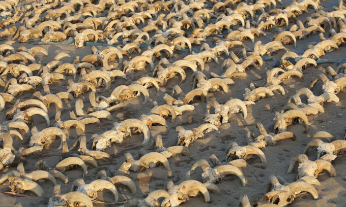 Hàng loạt đầu cừu đực với niên đại khoảng 2.000 năm, nhiều khả năng là đồ cúng tế, được tìm thấy trong đền thờ pharaoh Ramesses II.