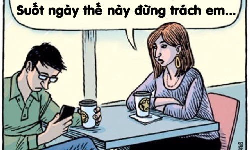 Thấy chồng suốt ngày ôm điện thoại, vợ cằn nhằn: “Cả ngày đi làm không gặp mặt nhau rồi. Tối về anh lại còn dán mặt vào điện thoại”.