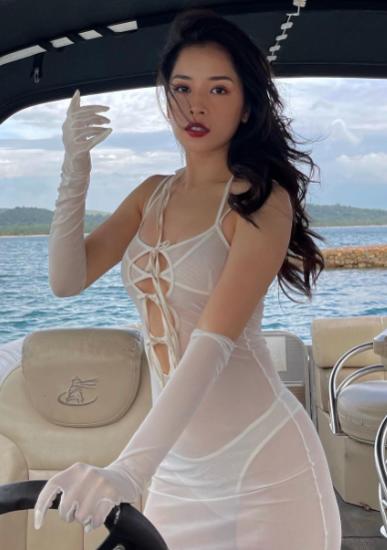 Chi Pu khoe dáng gợi cảm với trang phục mỏng manh.