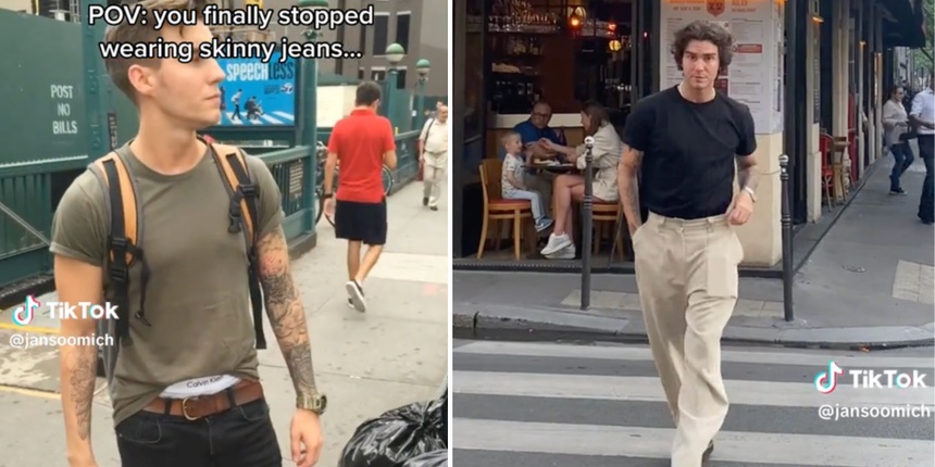 “Khi bạn ngừng mặc quần jeans bó”, người sáng tạo nội dung Ethan Glenn (đến từ Los Angeles, Mỹ) chia sẻ trong bài đăng ngày 16/5, thu hút 2,3 triệu lượt xem.