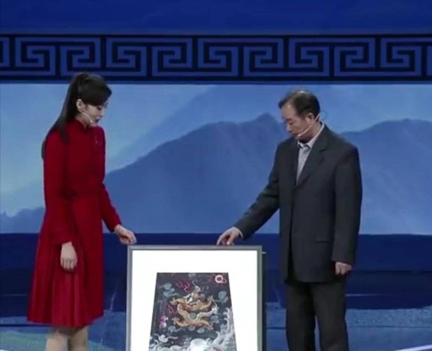 Bước vào trường quay, Jack lập tức khiến nhiều người bất ngờ khi mang theo một khung tranh lớn. Trong khung tranh là một chiếc áo choàng thêu long văn bay tỉ mỉ, món đồ mà chỉ các hoàng đế của triều đại nhà Thanh mới được sử dụng.