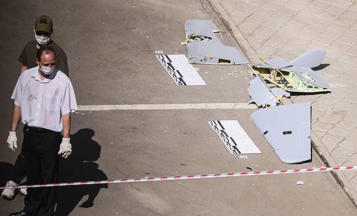 Mảnh vỡ của chiếc UAV đã tấn công Moscow, Nga vào ngày 30 tháng 5 năm 2023. (Ảnh: TASS)
