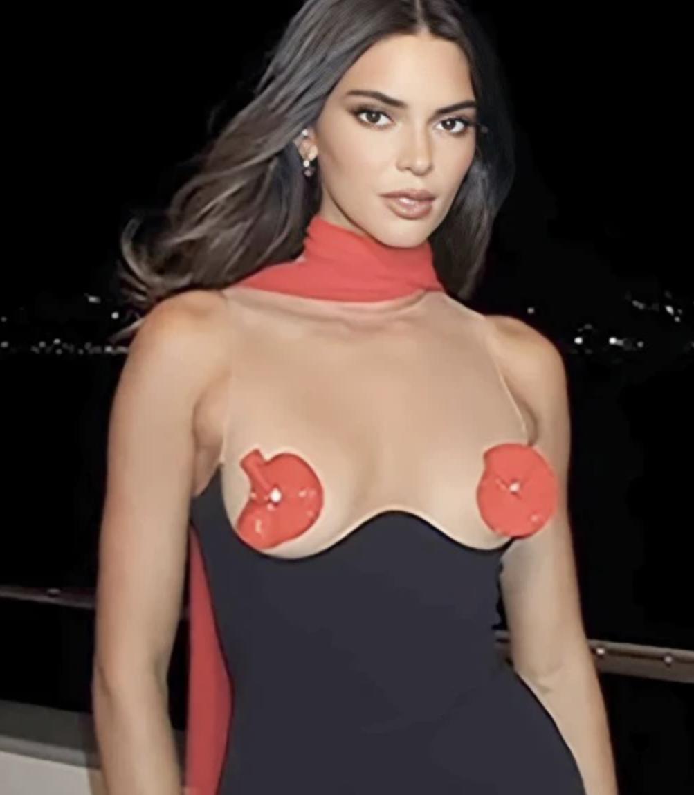 Theo Page Six , Kendall Jenner gây tranh cãi trên khắp các diễn đàn mạng xã hội khi lăng-xê mốt khoe miếng dán ngực trong kỳ nghỉ ở châu Âu. Trong video đăng tải trên trang cá nhân, người mẫu 27 tuổi diện đầm ngắn trên gối bó sát. Đáng chú ý, phần cổ áo trong suốt hoàn toàn, phô bày vòng một và chỉ được che bằng họa tiết cánh hoa.