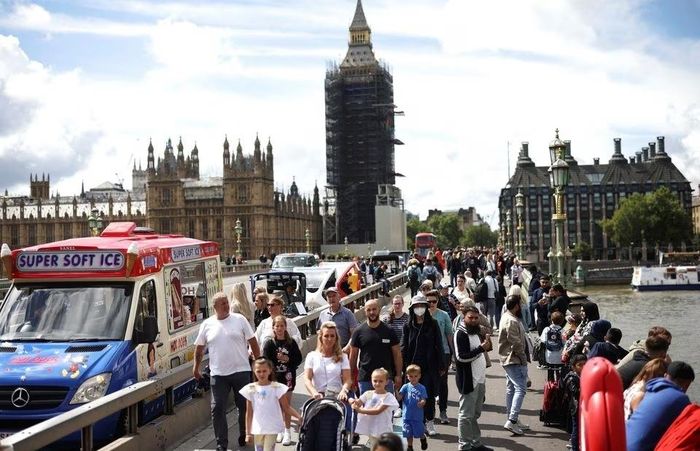Khách du lịch đi bộ trên cầu Westminster tại London, Anh. Ảnh: Reuters.