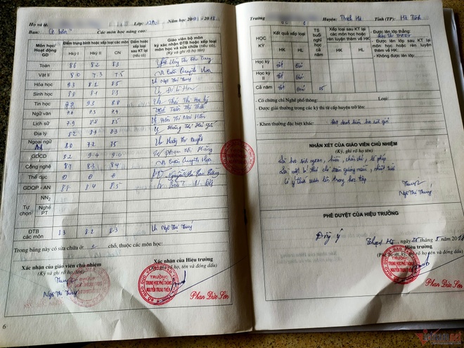 Học bạ năm lớp 12 của em Nguyễn thị T. là học sinh giỏi, hiện em đi xuất khẩu động ở Nhật. Ảnh: VietNamNet.