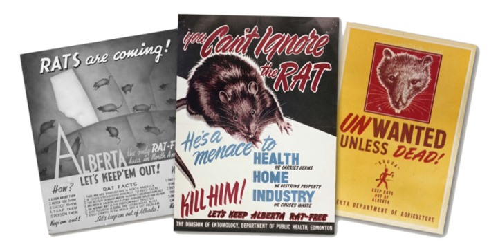 Các tấm poster tuyên truyền tiêu diệt loài chuột của Alberta. (Ảnh: The Guardian)