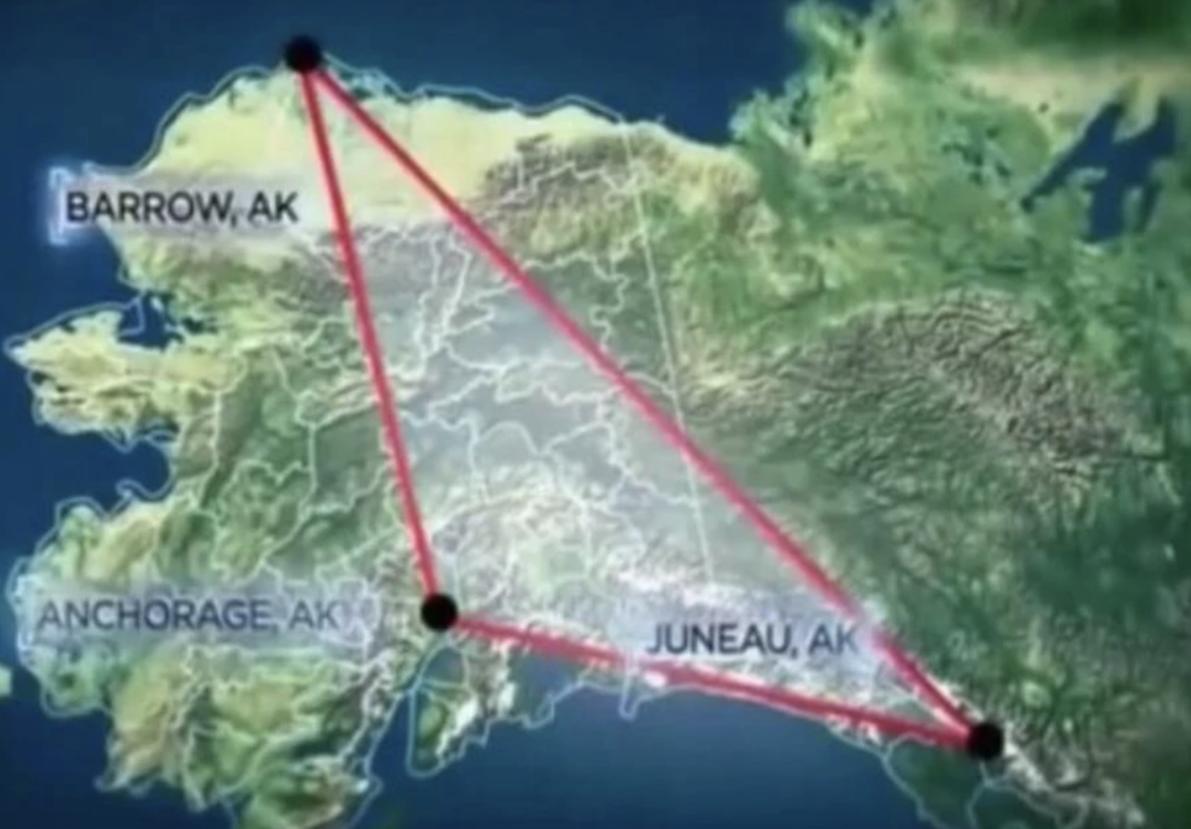 Bản đồ Tam giác Alaska, nối giữa Juneau, Anchorage đến Utqiagvik (trước đây là Barrow). Ảnh: Cryptid Wiki
