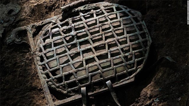 Một chiếc hộp bằng đồng nằm trong số các di vật được phát hiện tại Tam Tinh Đôi. Ảnh: CNN.