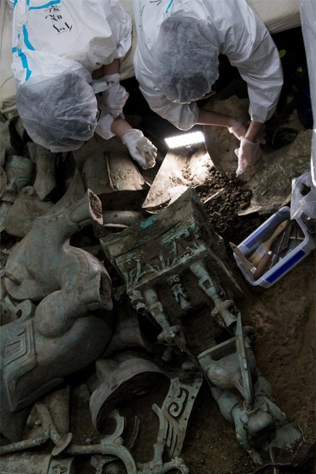 Phương tiện truyền thông nhà nước Trung Quốc đã đưa tin hôm 13/6 rằng, các cổ vật - trong đó có nhiều cổ vật được làm bằng vàng, đồng và ngọc bích - đã được khai quật trong 6 hố tại khu di chỉ khảo cổ huyền thoại Tam Tinh Đôi, gần Thành Đô.