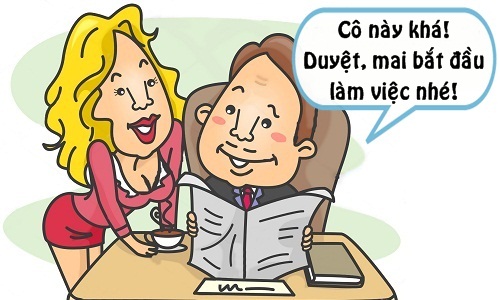 Cô gái nhanh nhảu đứng dậy, đến ghé sát vào tai ông giám đốc: