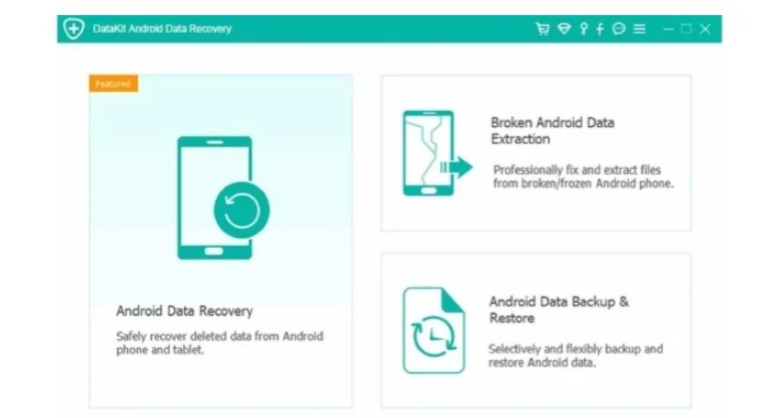Bước 1: Tải và cài đặt ứng dụng Datakit Android Data Recovery về điện thoại và cả máy tính. Sau đó, bạn khởi động ứng dụng và chọn vào mục phục hồi dữ liệu Android, rồi kết nối điện thoại với máy tính qua cổng USB để thực hiện khôi phục.