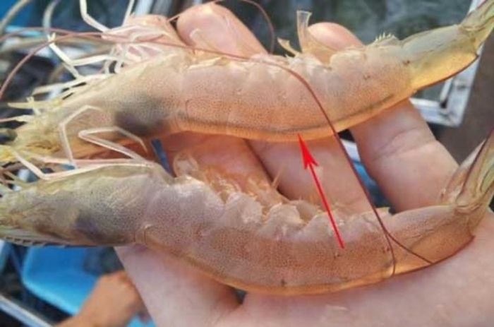 Ruột là đường ống nhỏ chạy dọc ở phần phía trên lưng tôm (chỉ đen). (Ảnh minh họa)