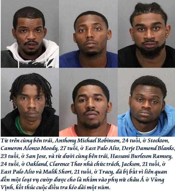 Những người đàn ông này trong độ tuổi 21-27 và đến từ các vùng khác nhau ở Vùng Vịnh cũng như Central Valley. Họ bị cáo buộc thực hiện hơn 70 vụ trộm cướp từ tháng 10/2020 đến tháng 9/2021, Sở Cảnh sát San Jose cho biết trong thông cáo báo chí. Nhiều nạn nhân bị thương khi bị cướp.