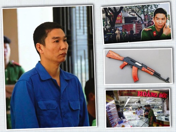 Báo đảng hôm 21/9 cho hay, đại úy công an Ngô Văn Quốc, công tác tại Trại giam Bình Điền, Bộ Công an, hầu toà với cáo buộc dùng súng AK cướp tiệm vàng tại chợ Đông Ba .