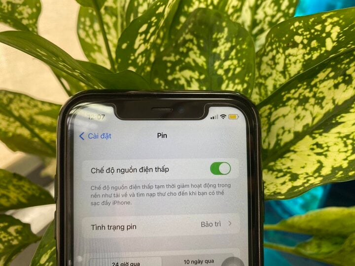 Chế độ nguồn điện thấp pin iPhone chuyển màu vàng.