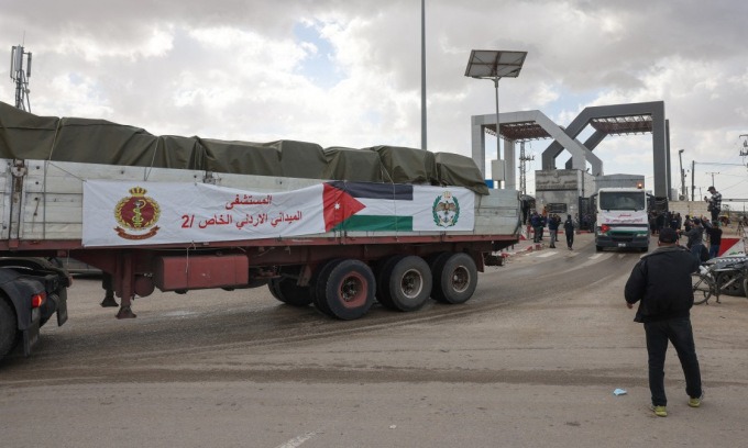 Bệnh viện với sức chứa 41 giường do Jordan cung cấp, di chuyển qua cửa khẩu Rafah của Ai Cập sau khi được giới chức Israel cấp phép, đi kèm với 170 nhân viên y tế và 40 xe tải chở hàng cứu trợ.