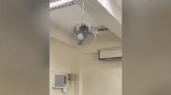 Theo đoạn clip ghi lại, nam sinh viên ngồi trong lớp nghe tiếng quạt quay đều, thế nhưng, lại chẳng thấy làn gió mát nào. Ngay sau đó, anh chàng liền ngước lên nhìn trần nhà... thì phát hiện cảnh tượng khá nguy hiểm.