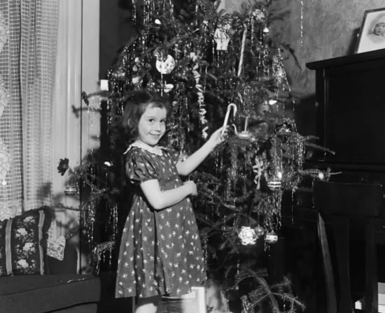 Vào những năm 1930 - 1940, các gia đình thường hay trang trí cây thông Noel bằng những cây kẹo và dây kim tuyến hay dùng trong lễ hội.