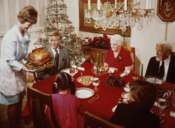 Trong các bữa ăn ngày lễ, các gia đình thường sẽ dùng khăn trải bàn màu đỏ và nến màu xanh lá cây - những màu sắc truyền thống của Giáng sinh. Họ sẽ cùng ăn các món ăn truyền thống như gà tây, bánh quế,…