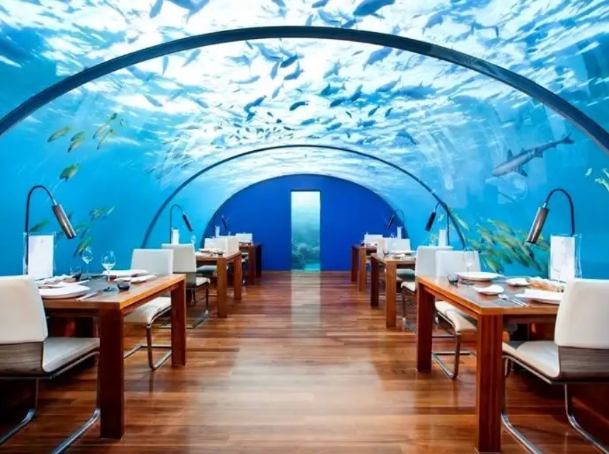 Được xây dựng dưới lòng đại dương, mang lại tầm nhìn tuyệt đẹp về sinh vật biển qua trần và tường kính, những nhà hàng này thực sự sẽ mang lại cho ban trải nghiệm ăn uống đáng nhớ và đậm nét Maldives.