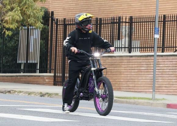 Con trai nuôi gốc Việt có sở thích chơi xe máy điện, xe mô tô và thỉnh thoảng cũng lái xế hộp đắt đỏ xuống phố.