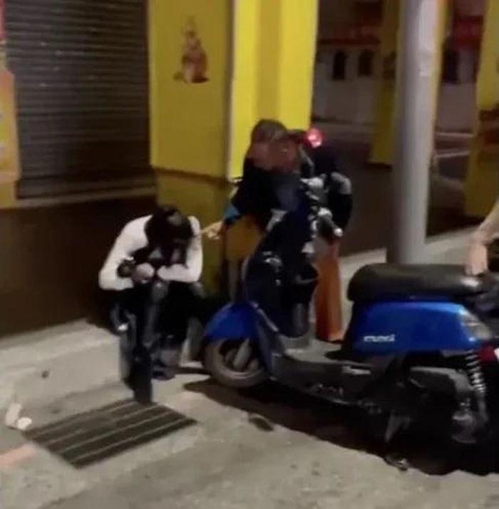 Ôn Thúy Bình bị chồng mới đạp vào bụng, ngã xuống đường.