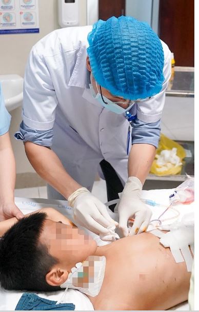 Khi chuyển đến Bệnh viện Nhi Trung ương, trẻ được cấp cứu, phẫu thuật cắt bỏ một đoạn ruột, sau đó tiêm huyết thanh và vaccine phòng dại kịp thời.