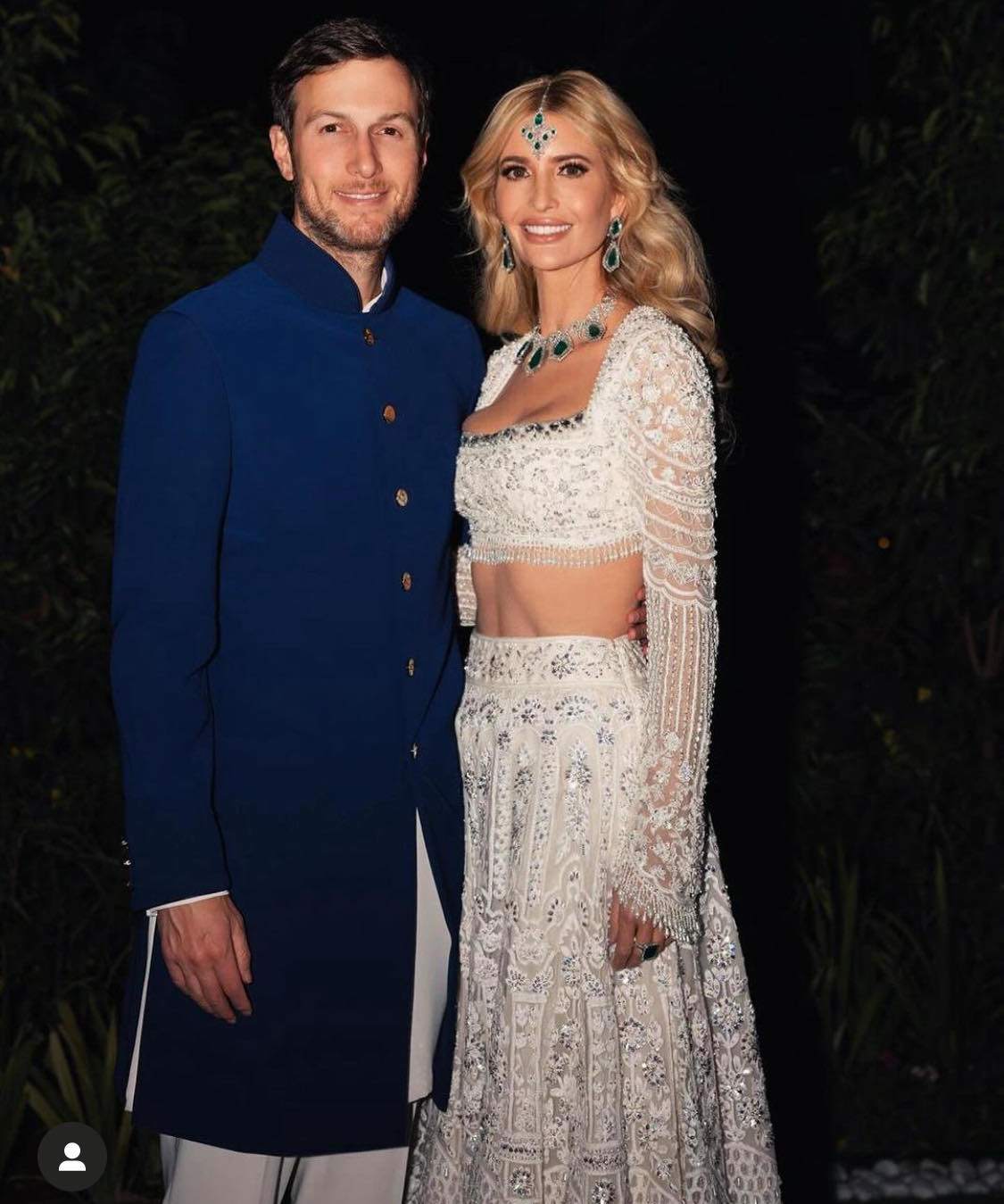 Ivanka Trump gây chú ý khi đăng tải loạt ảnh diện trang phục theo phong cách Ấn Độ màu xanh lá cây, trắng và ánh kim, khoe vẻ ngoài xinh đẹp tựa nữ thần tại bữa tiệc 120 triệu USD nhanh chóng thu hút hàng nghìn lượt yêu thích.