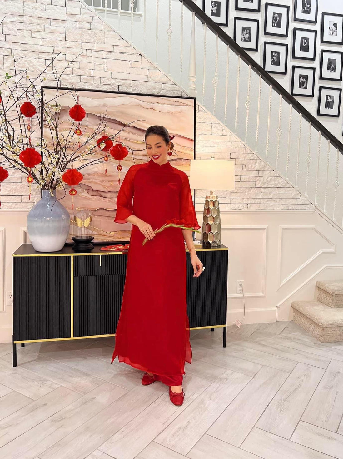 Trên trang cá nhân, Phạm Hương đăng tải loạt ảnh đón năm mới cùng gia đình tại Mỹ. Biệt thự của cô được trang trí đơn giản nhưng tinh tế, ấm cúng. Hoa hậu Phạm Hương diện áo dài nền nã, khoe nhan sắc mặn mà. Hai quý tử cũng tạo dáng đáng yêu chụp hình cùng cha mẹ.