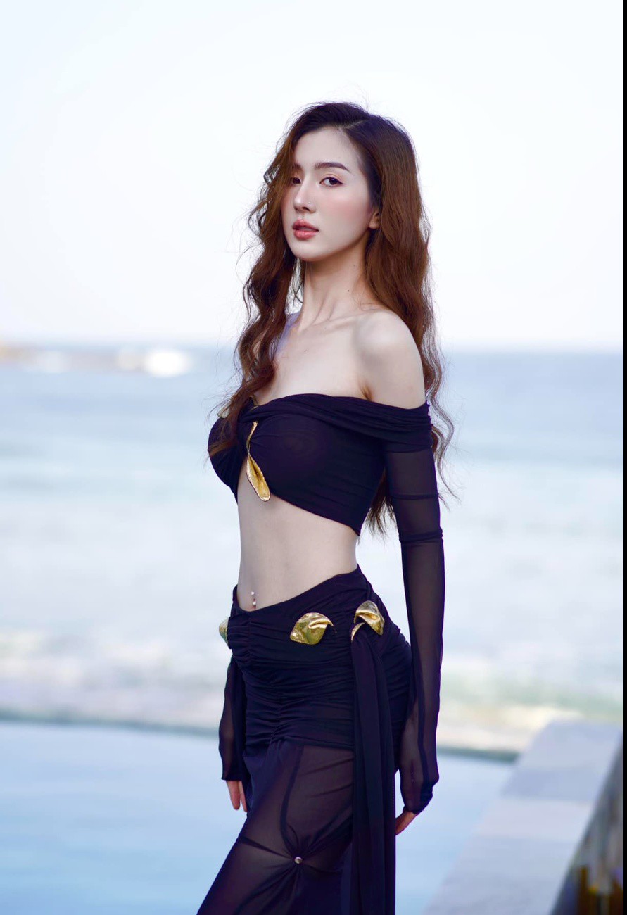 Diện bộ cánh gồm áo croptop cùng chân váy voan xuyên thấu, Tuệ Như khoe đường cong nuột nà, vóc dáng không chút mỡ thừa.