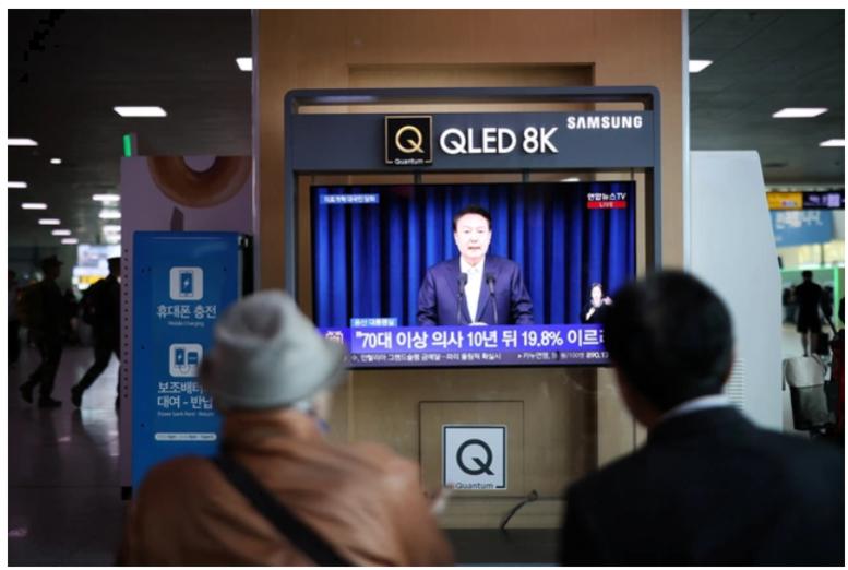 Người dân tại thủ đô Seoul xem tin tức về phát biểu của Tổng thống Hàn Quốc Yoon Suk-yeol liên quan cuộc khủng hoảng ngành y hôm 1-4 Ảnh: REUTERS
