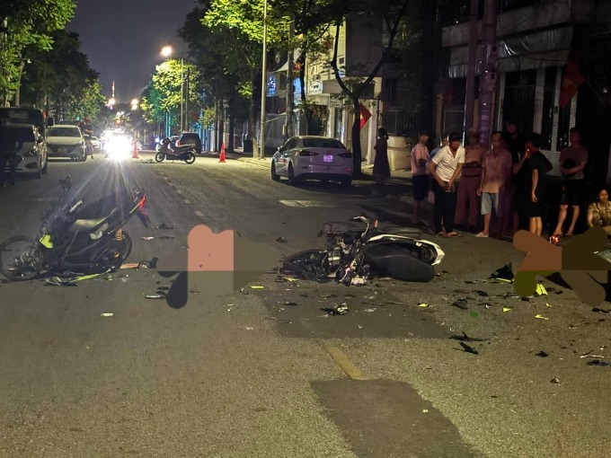 Hai thanh niên tử vong tại chỗ, hai người trọng thương sau khi hai xe máy đối đầu trên đường Điện Biên Phủ, TP Huế, sáng 2/4.