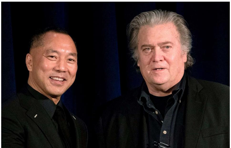 Ông Quách (trái) và cựu chiến lược gia trưởng Nhà Trắng Steve Bannon từng đồng sáng lập một tổ chức phi lợi nhuận