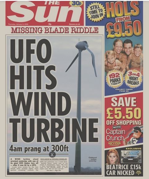 Năm đó, người ngoài hành tinh cũng được cho là đâm vào một turbine gió, thu hút sự chú ý của truyền thông quốc gia.