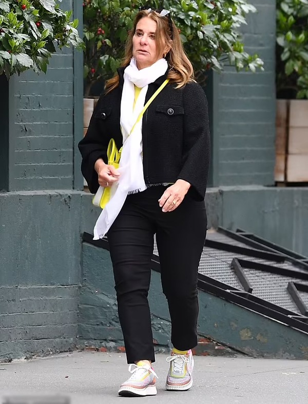 Mặc dù vậy, chiếc nhẫn kim cương trên ngón tay đặc biệt của Melinda không hề bị tháo đi sau lời phủ nhận. Trong lần xuất hiện mới nhất, bà mẹ ba con mặc áo khoác đen đơn giản và quần jean bó sát, kết hợp với giày thể thao Chloe trị giá 850 USD.