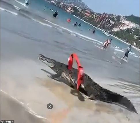 Một con cá sấu đã xâm chiếm một bãi biển ở Zihuatanejo, Mexico khiến nhiều người phải bỏ chạy được ghi lại vào đầu tháng 12/2023.