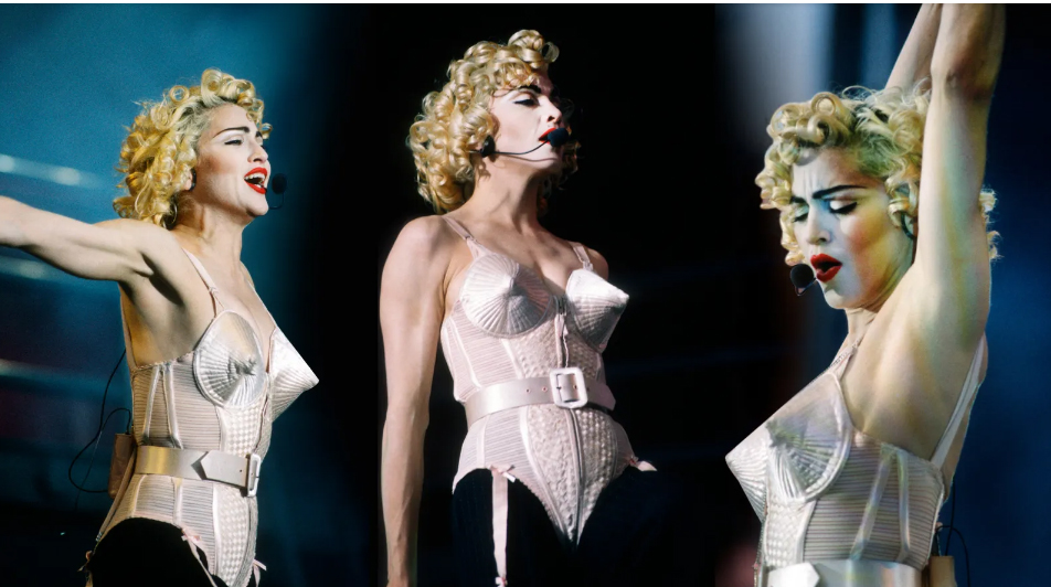 Một ví dụ điển hình là chiếc áo lót hình nón mang tính biểu tượng của “nữ hoàng nhạc pop” Madonna diện trong chuyến lưu diễn "Blond Ambition" năm 1990. Bộ trang phục đã nhanh chóng đi vào lịch sử làng thời trang, giúp nhà thiết kế người Pháp Jean Paul Gaultier trở thành cái tên quen thuộc vào đầu những năm 1990.